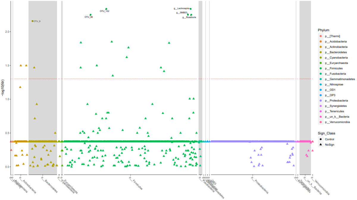 f.mahattan <- mpse %>% mp_plot_diff_manhattan( .group = Sign_Class, .y = fdr, .size = 2.4, taxa.class = c('OTU', 'Genus'), anno.taxa.class = Phylum )